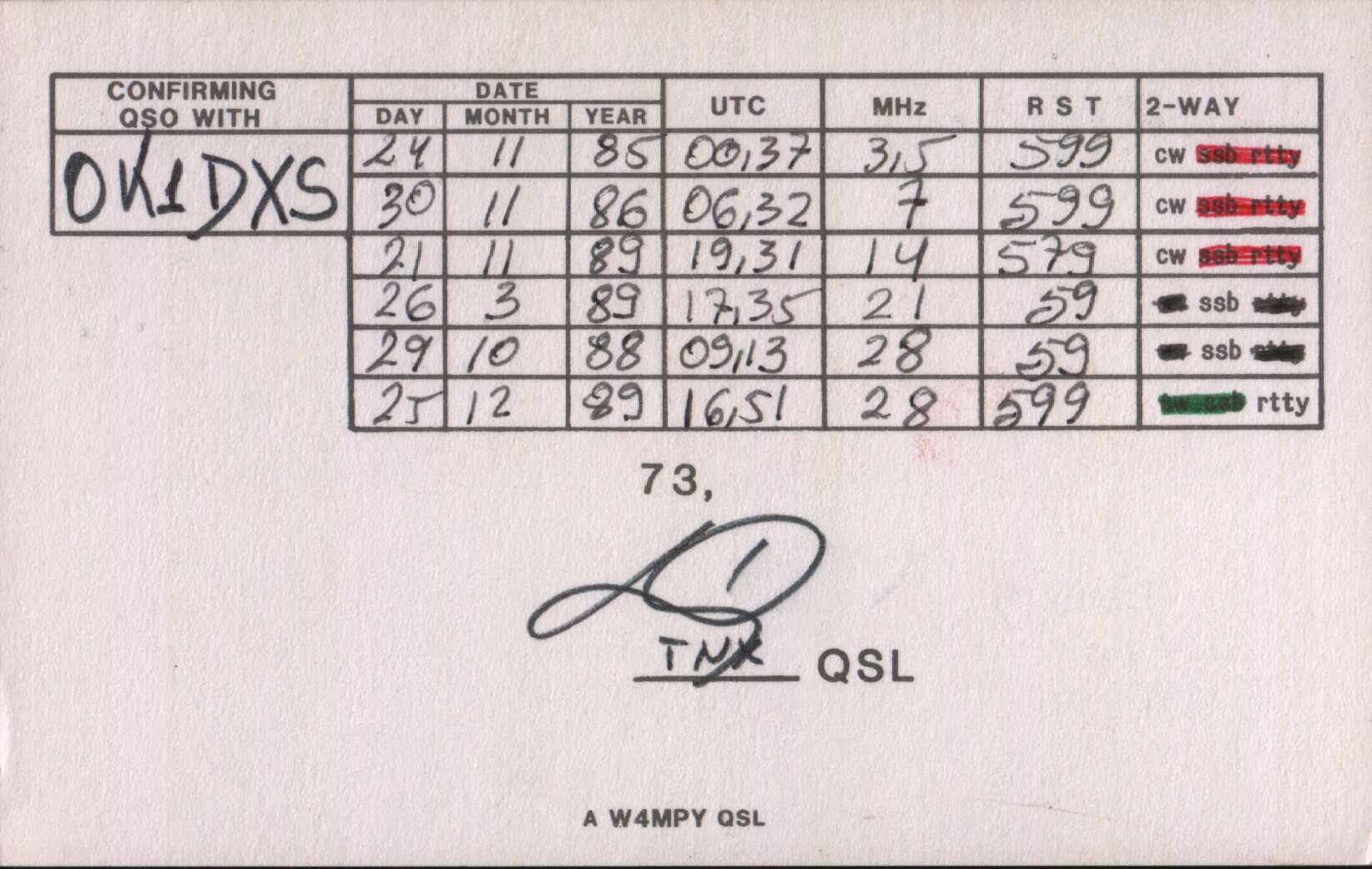 80m 40m 20m 15m 10m SSB