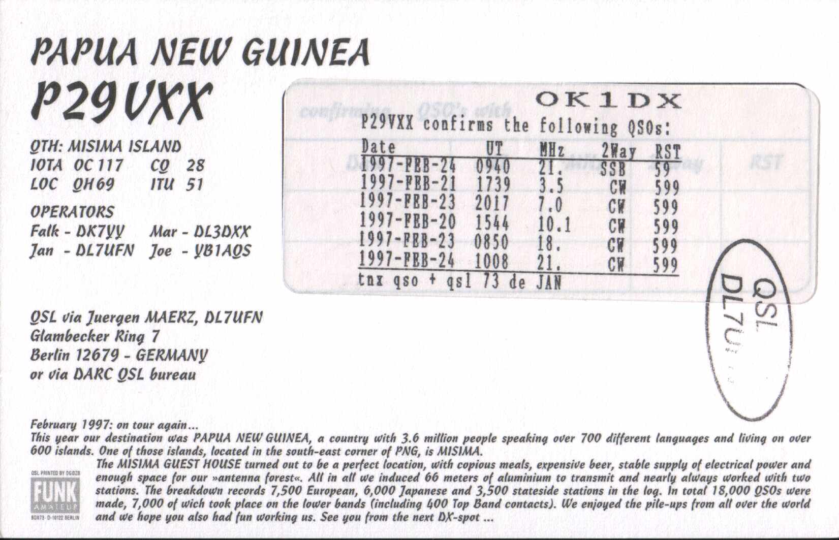 80m 40m 30m 17m 15m CW SSB