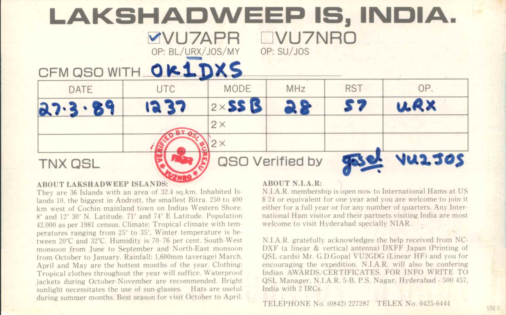 Laccadive Islands - VU7